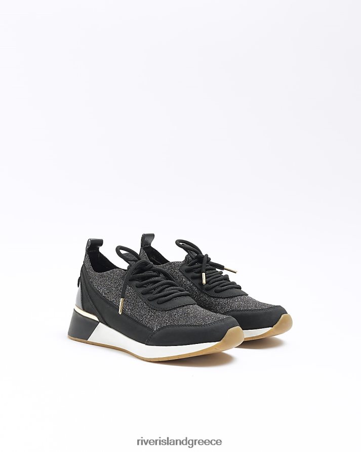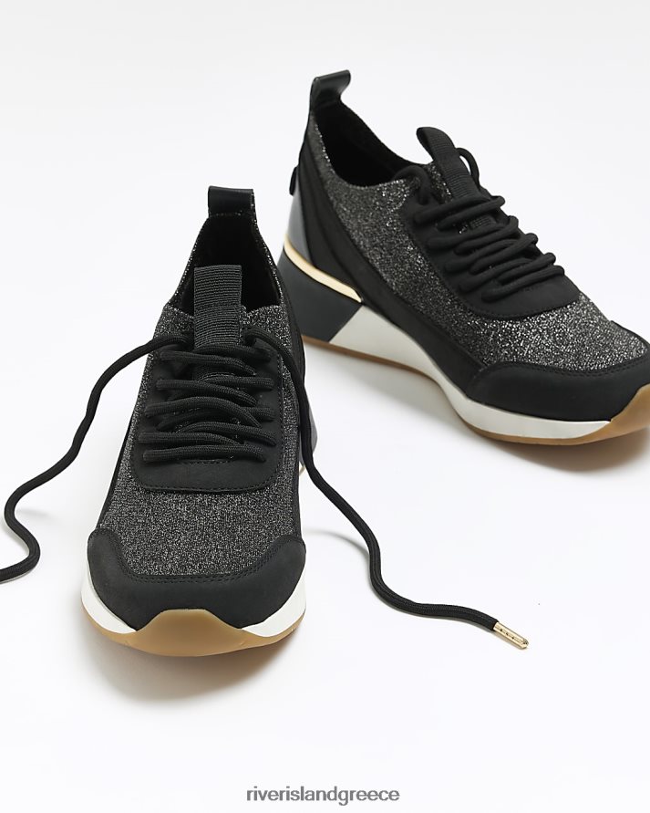 River Island είδη υπόδησης μαύρος γυναίκες πλεκτά glitter wedge παπούτσια B6N8X4573