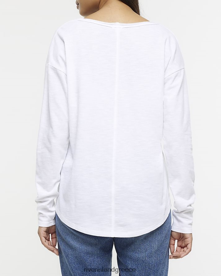 River Island ενδύματα άσπρο γυναίκες μακρυμάνικο μπλουζάκι με λαιμόκοψη B6N8X4217
