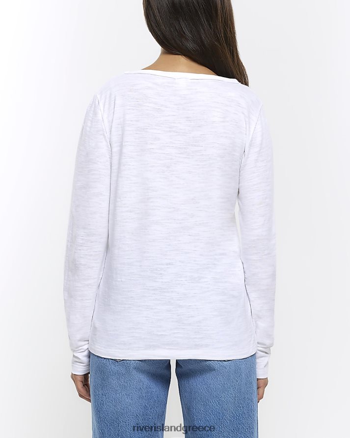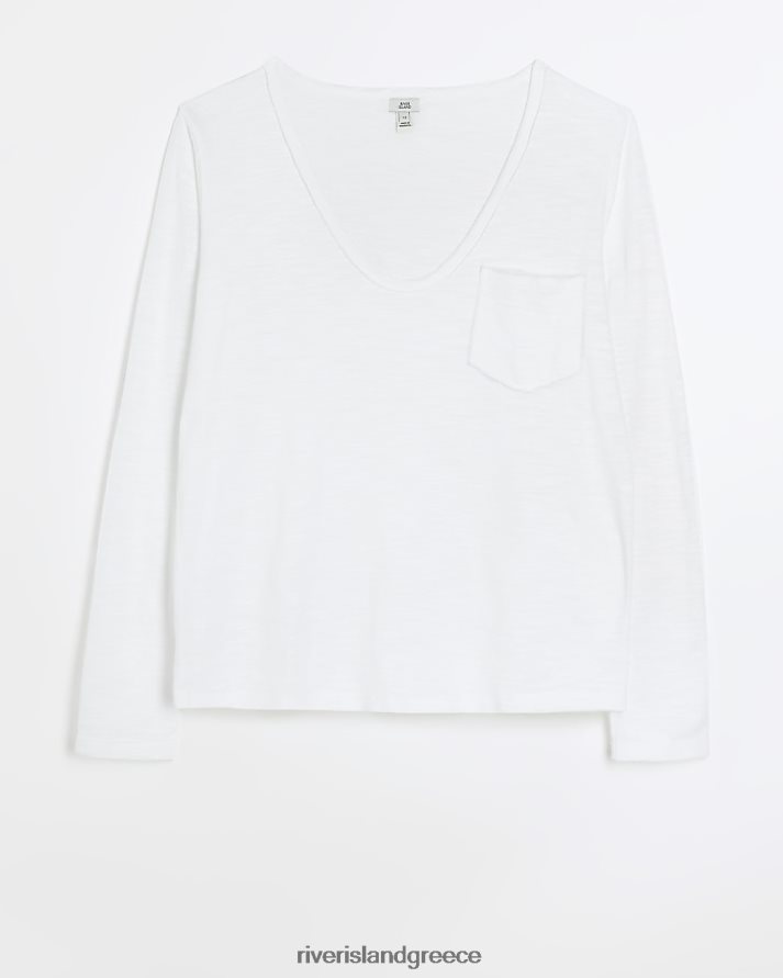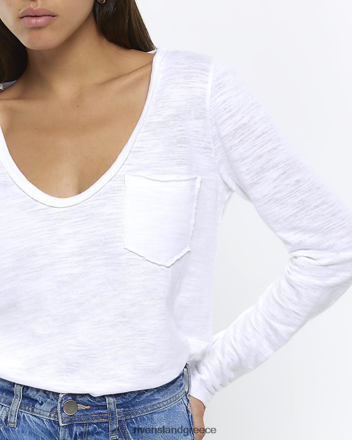 River Island ενδύματα άσπρο γυναίκες μακρυμάνικο μπλουζάκι τσέπης B6N8X4234