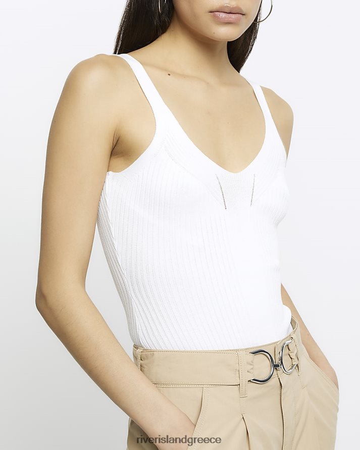 River Island ενδύματα άσπρο γυναίκες μπλουζάκι πλεκτό με ραβδώσεις B6N8X1885