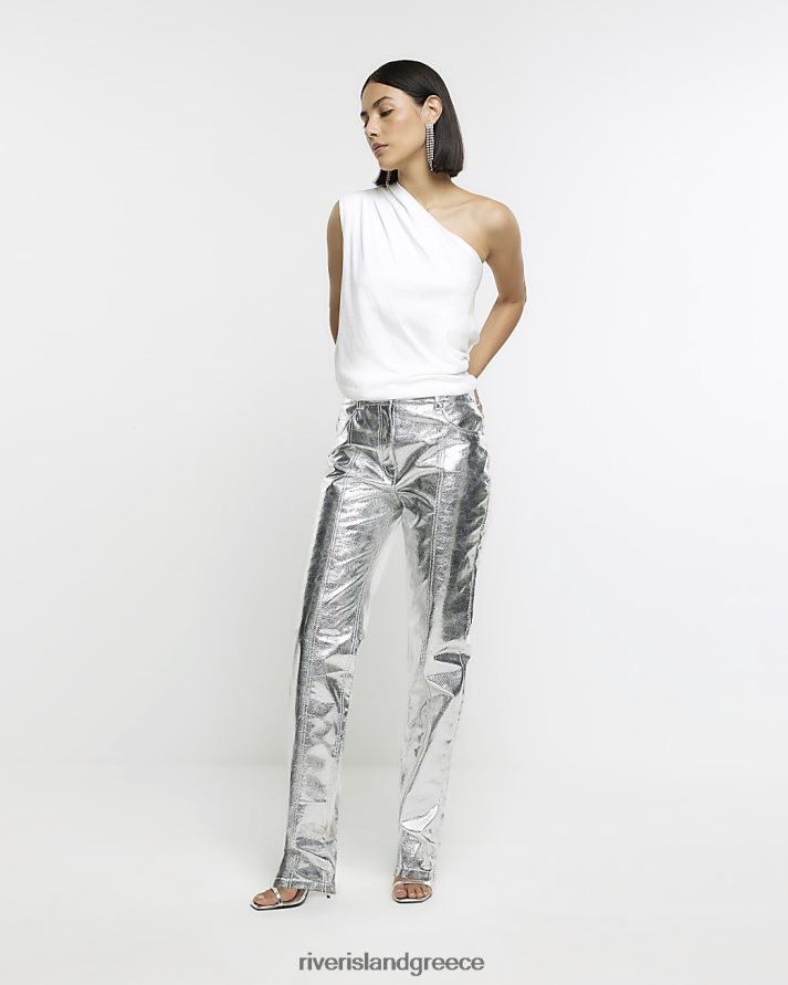 River Island ενδύματα άσπρο γυναίκες πλισέ με έναν ώμο B6N8X3924