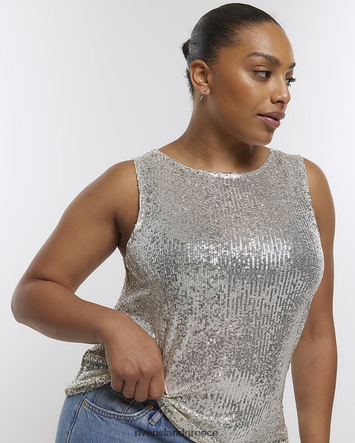 River Island ενδύματα ασήμι γυναίκες συν φανελάκι με πούλιες B6N8X2206