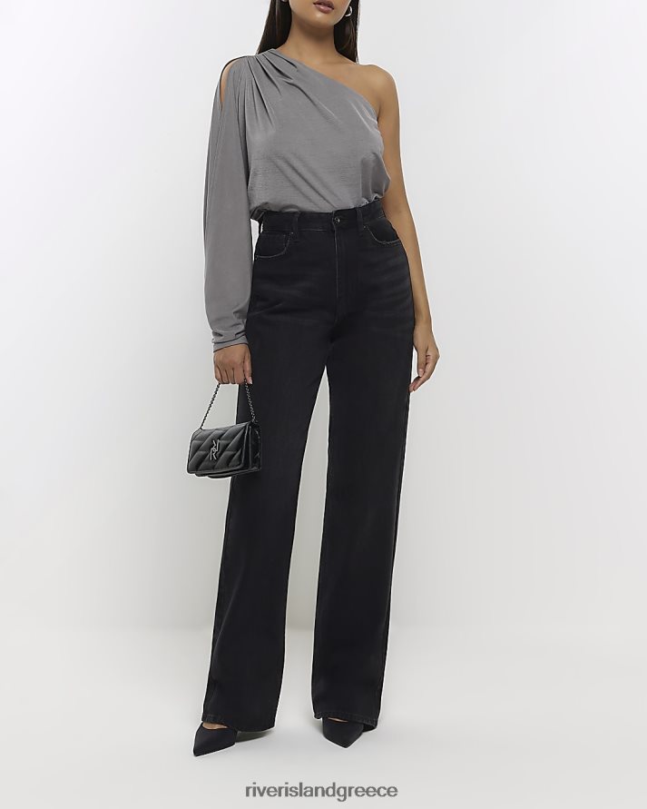 River Island ενδύματα γκρί γυναίκες drape one shoulder top B6N8X1001