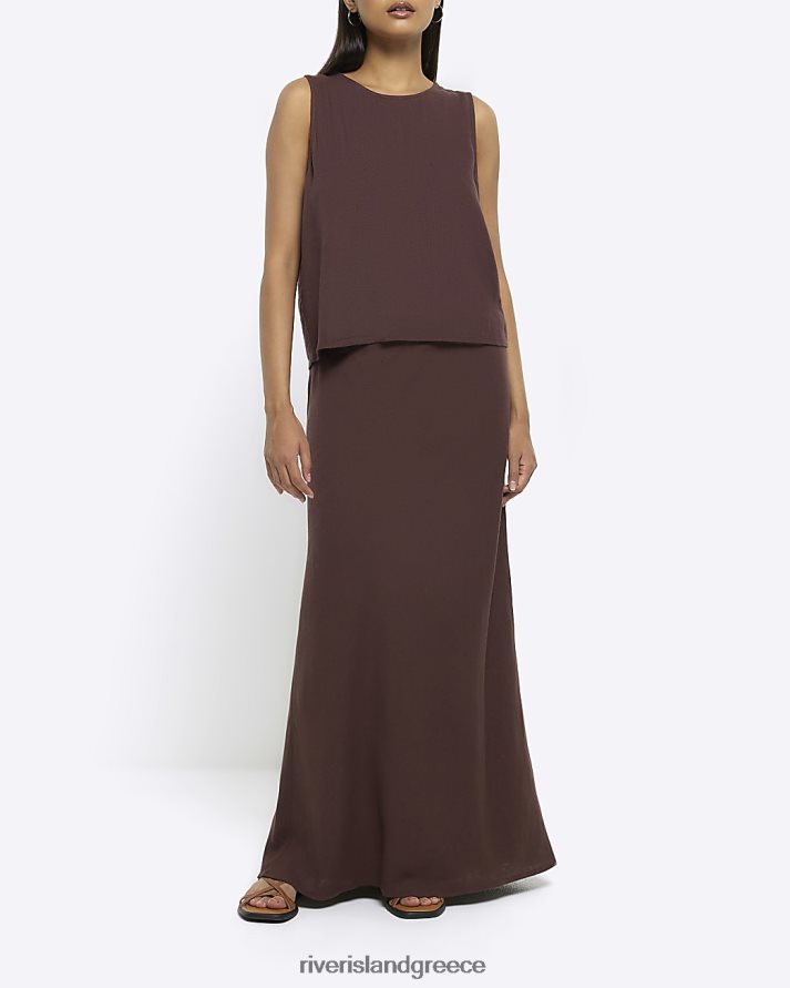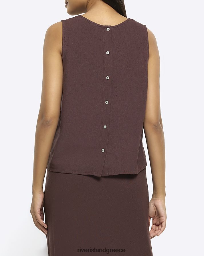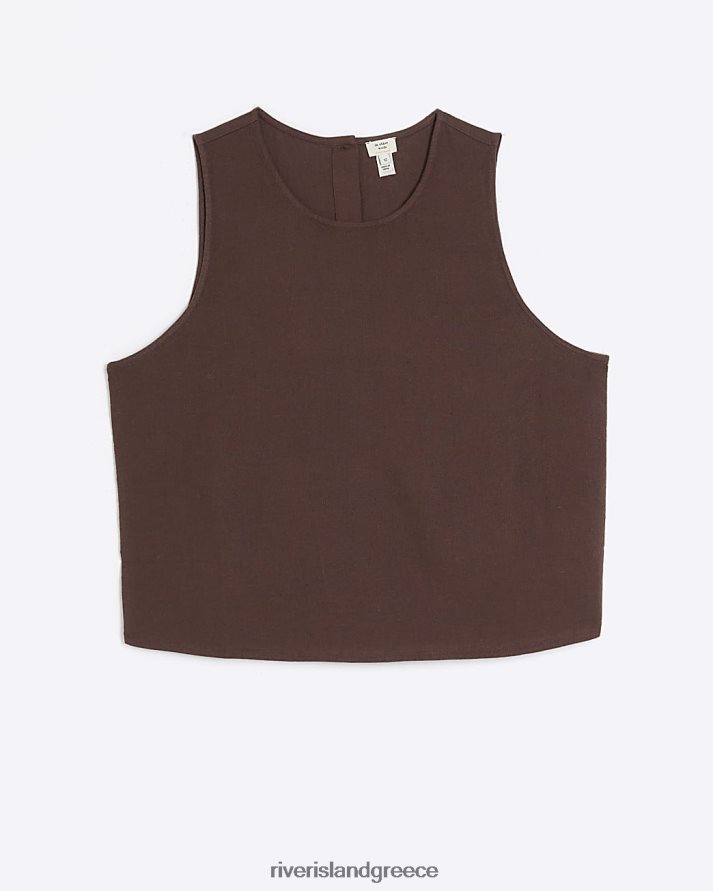 River Island ενδύματα καφέ γυναίκες αμάνικο τοπ με κουμπιά με λινό B6N8X4237