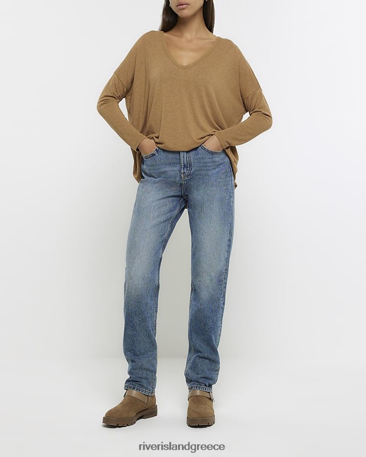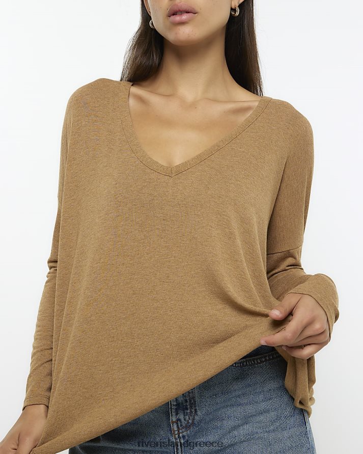 River Island ενδύματα καφέ γυναίκες μακρυμάνικο μπλουζάκι B6N8X528