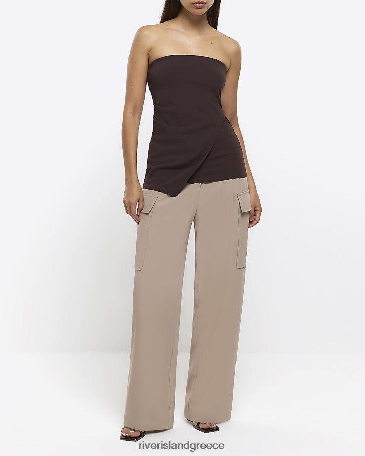 River Island ενδύματα καφέ γυναίκες bandeau ασύμμετρο τοπ B6N8X1256