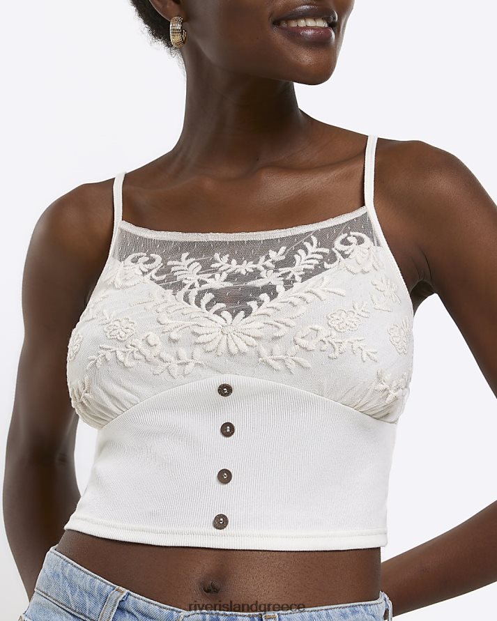 River Island ενδύματα κρέμα γυναίκες κεντητό φλοράλ καμί τοπ B6N8X4427