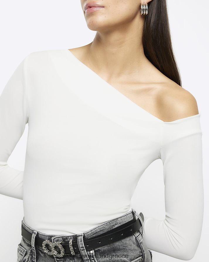 River Island ενδύματα κρέμα γυναίκες μακρυμάνικο μπλουζάκι εκτός ώμου B6N8X128