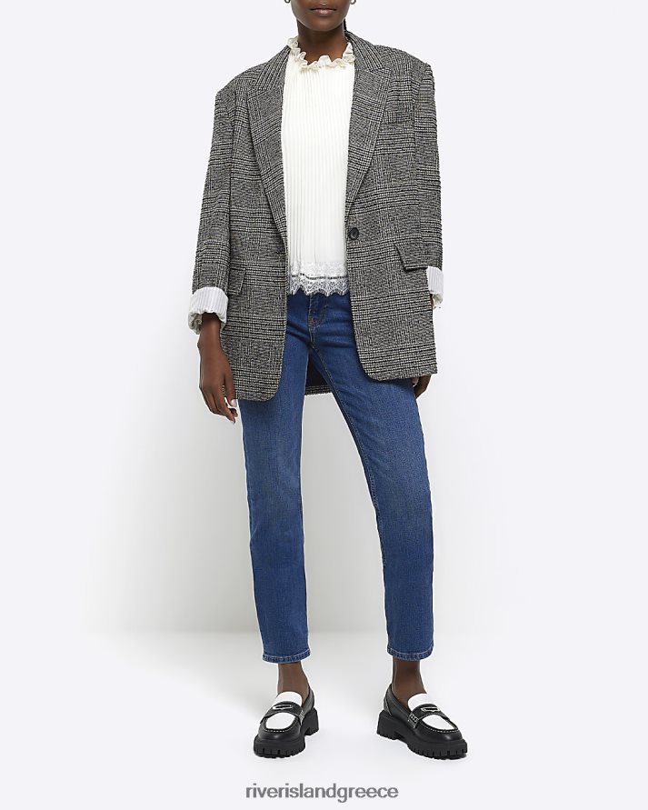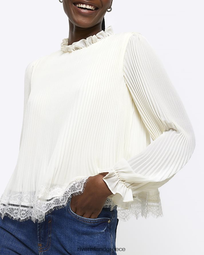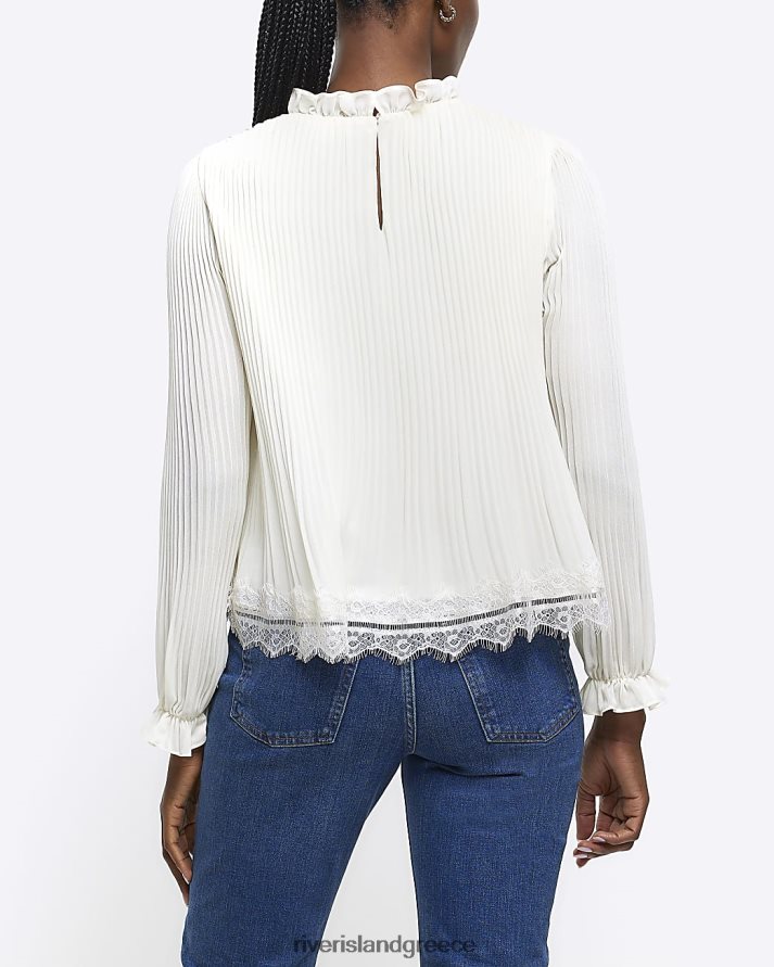 River Island ενδύματα κρέμα γυναίκες μακρυμάνικο μπλουζάκι με δαντέλα B6N8X726