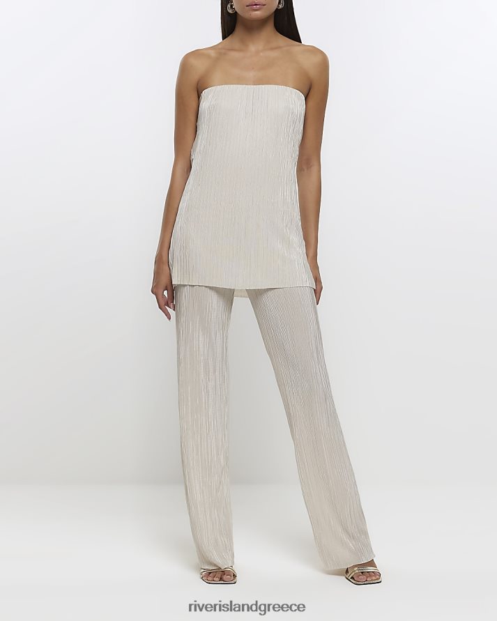 River Island ενδύματα κρέμα γυναίκες plisse cowl back bandeau top B6N8X1435