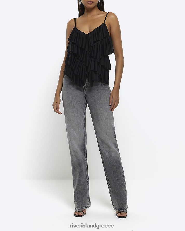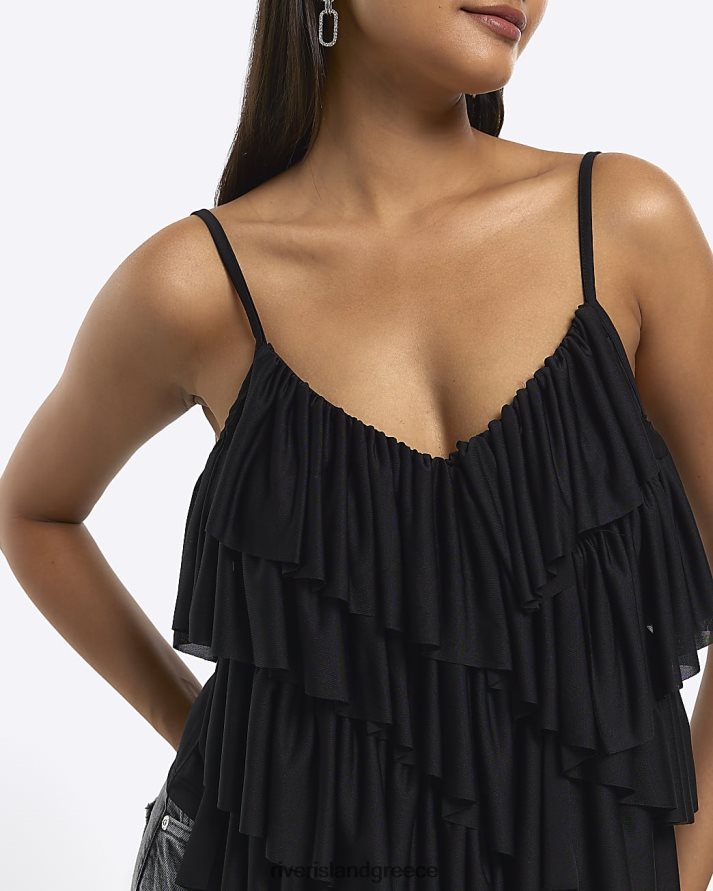 River Island ενδύματα μαύρος γυναίκες ασύμμετρο βολάν καμί τοπ B6N8X1172