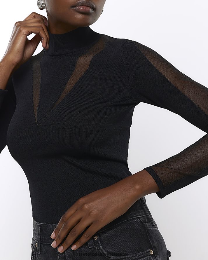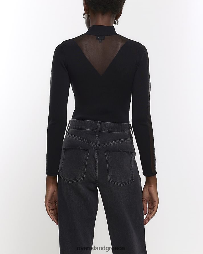 River Island ενδύματα μαύρος γυναίκες διαφανές μακρυμάνικο τοπ B6N8X256