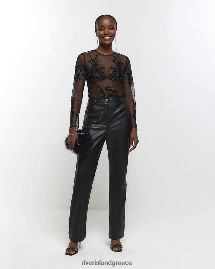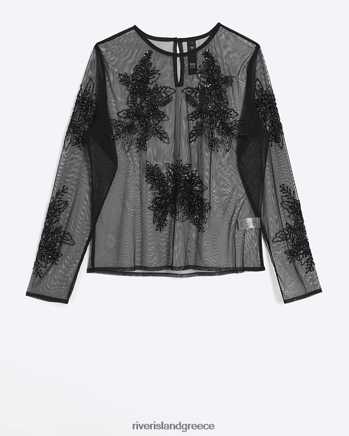 River Island ενδύματα μαύρος γυναίκες διχτυωτό διακοσμημένο επάνω μέρος B6N8X3751