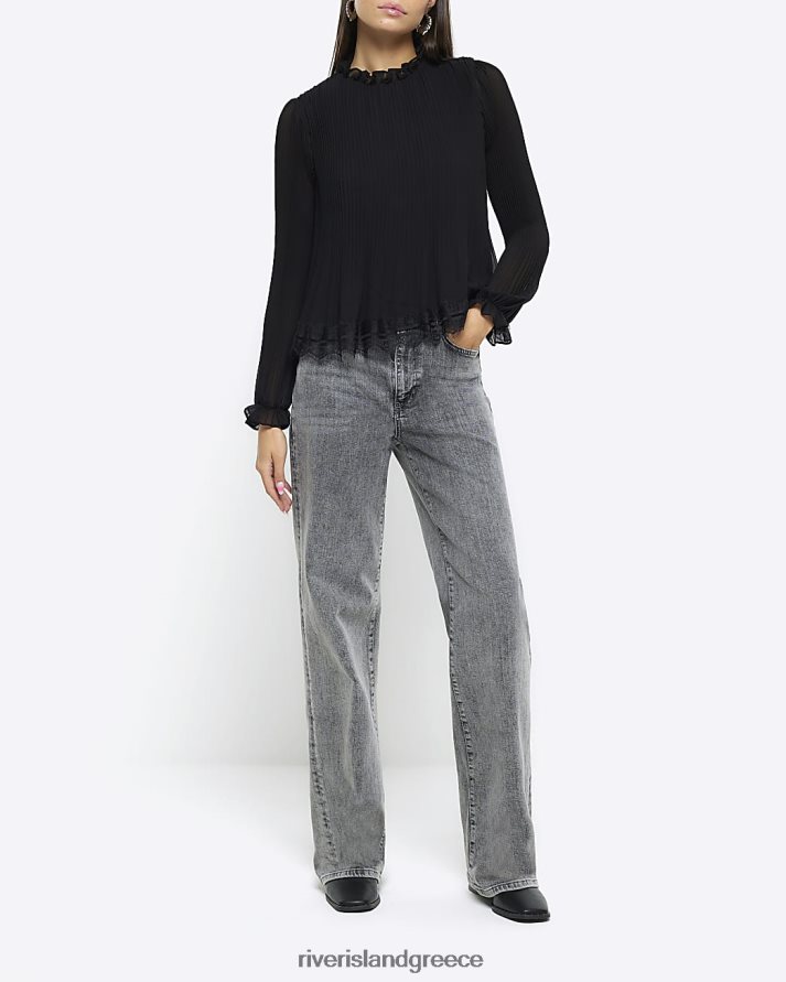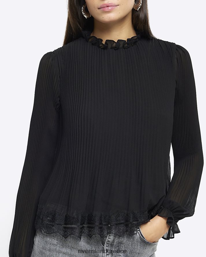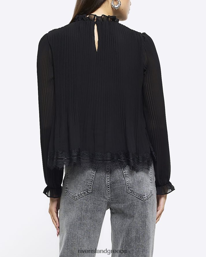 River Island ενδύματα μαύρος γυναίκες μακρυμάνικο μπλουζάκι με δαντέλα B6N8X727