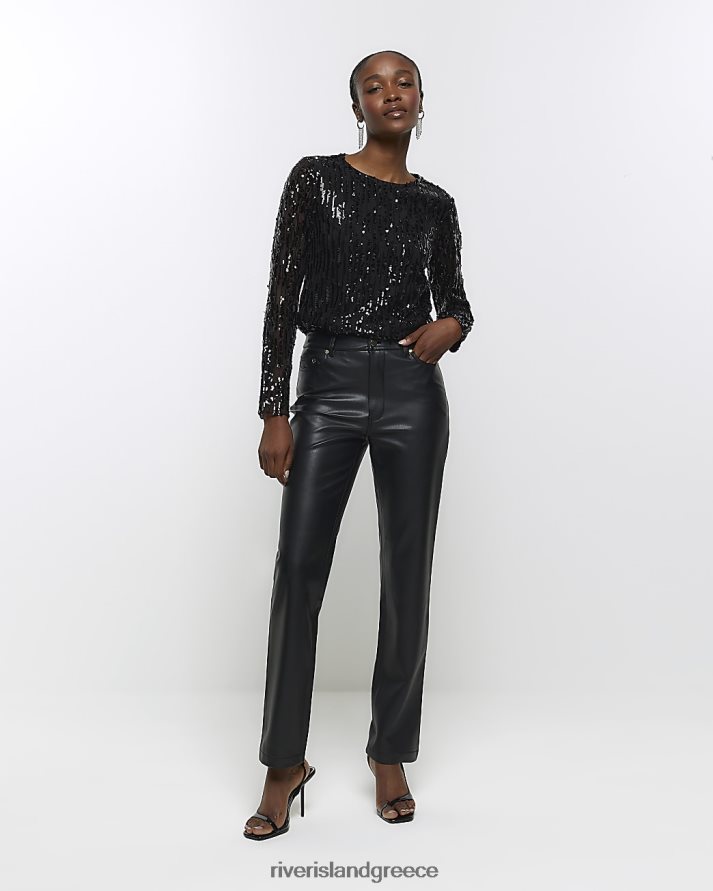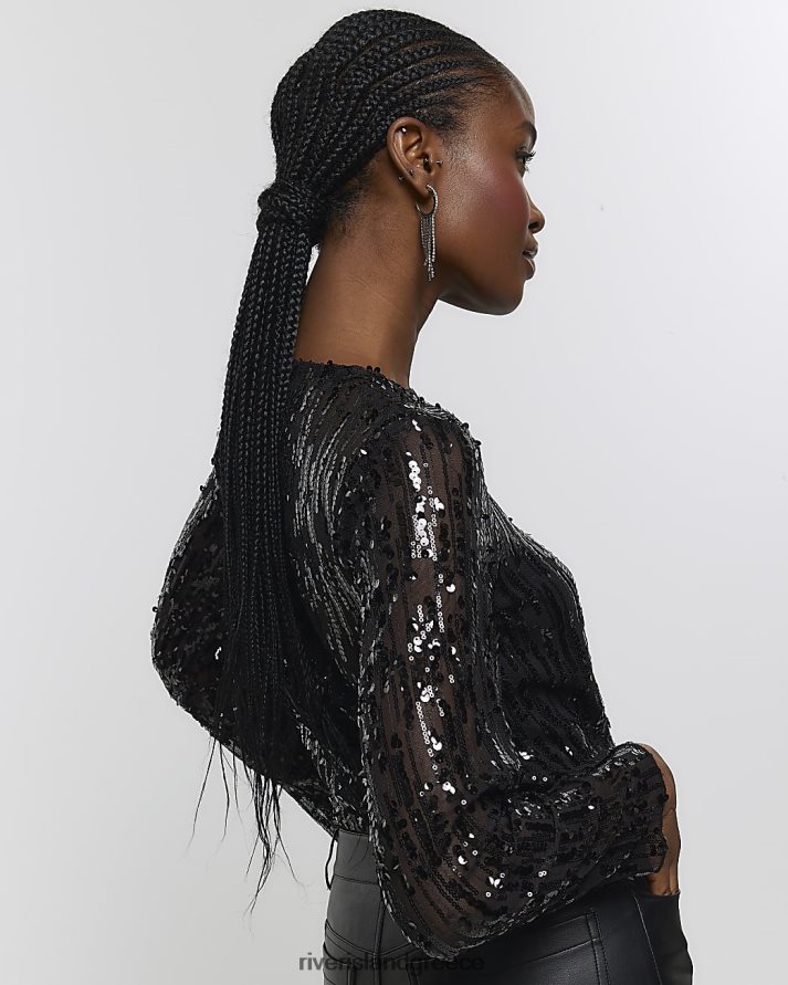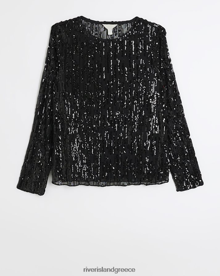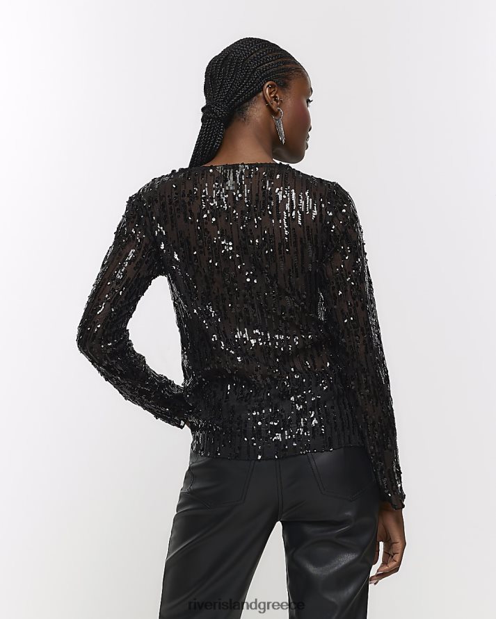 River Island ενδύματα μαύρος γυναίκες μακρυμάνικο τοπ με παγιέτες B6N8X3944