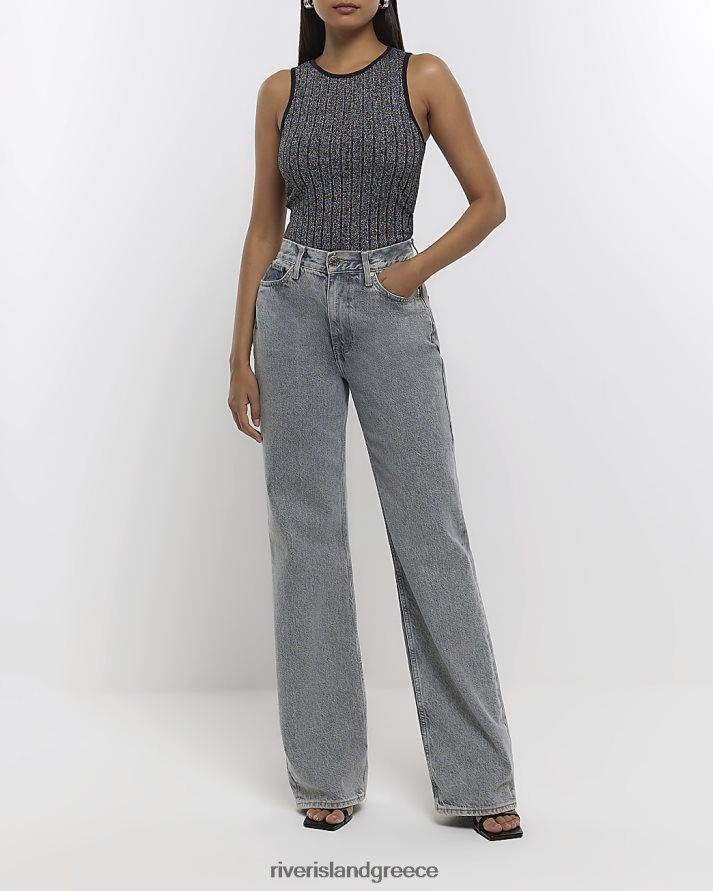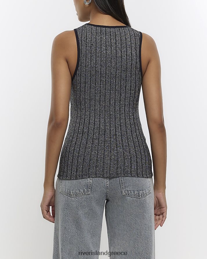 River Island ενδύματα μαύρος γυναίκες μεταλλικό φανελάκι racer B6N8X1422