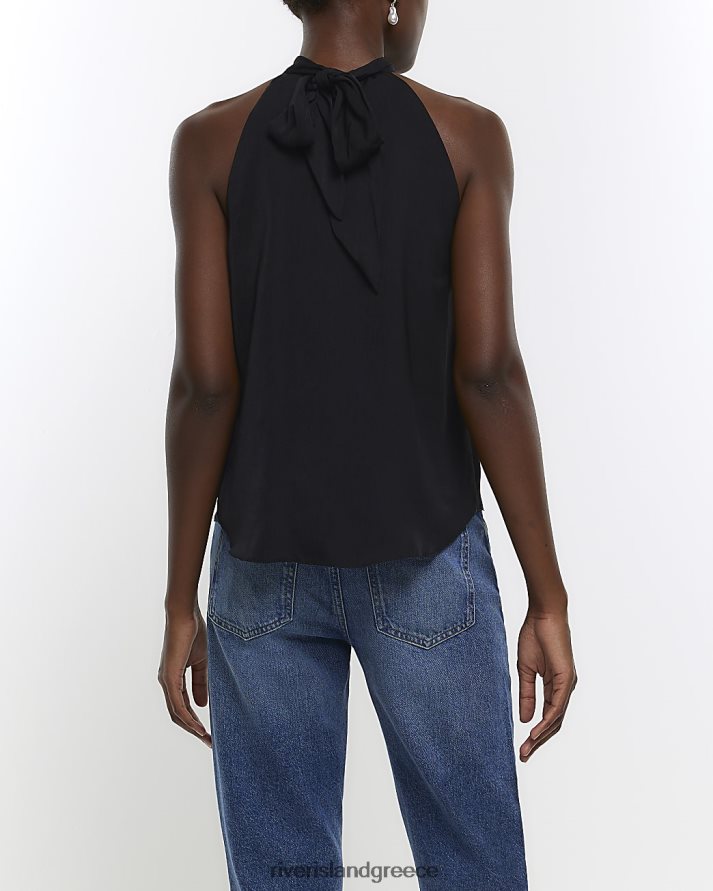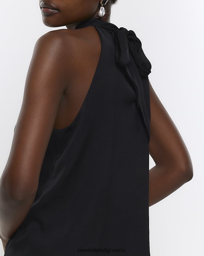 River Island ενδύματα μαύρος γυναίκες σατέν μπλουζάκι με λαιμόκοψη B6N8X534