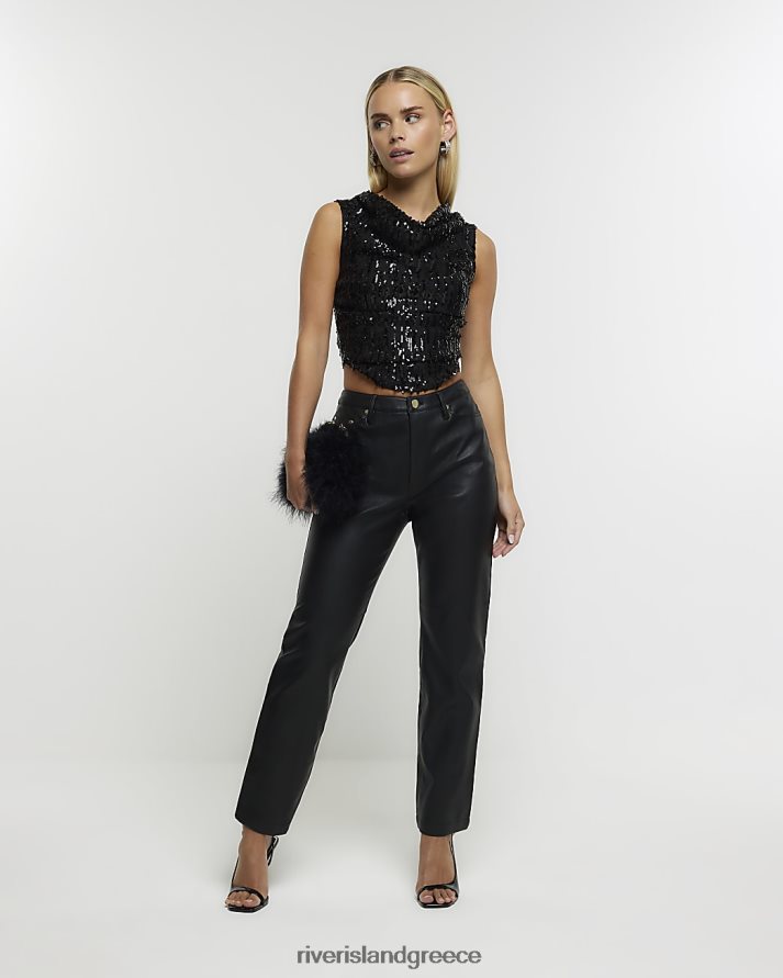 River Island ενδύματα μαύρος γυναίκες τοπ λαιμό με κουκούλα με μικροκαμωμένη παγιέτα B6N8X5244