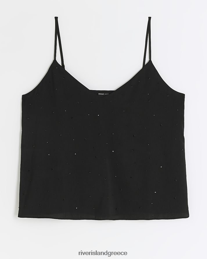 River Island ενδύματα μαύρος γυναίκες diamante cami top B6N8X3883
