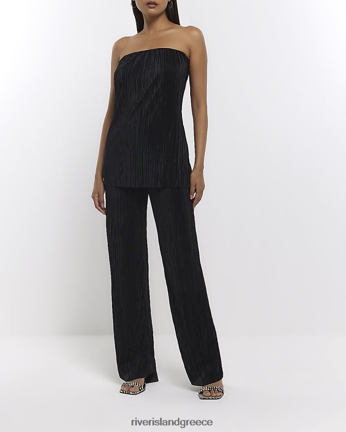 River Island ενδύματα μαύρος γυναίκες plisse cowl back bandeau top B6N8X1436