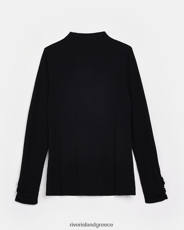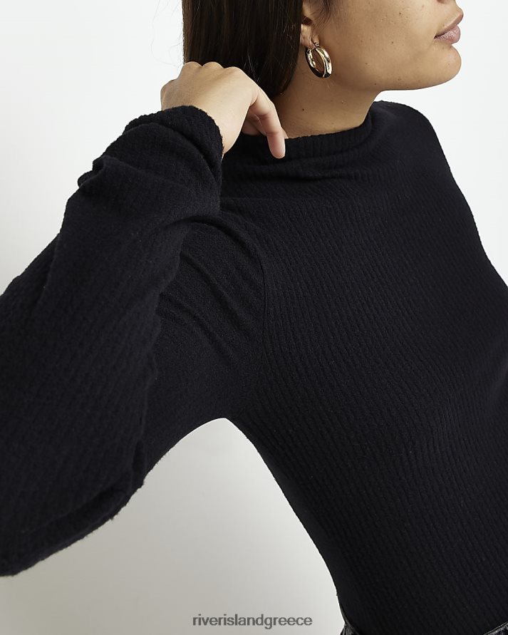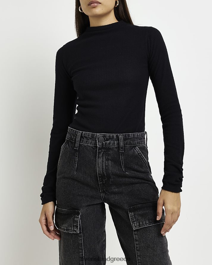 River Island ενδύματα μαύρος γυναίκες rib ψηλό λαιμό μακρυμάνικο τοπ B6N8X3926