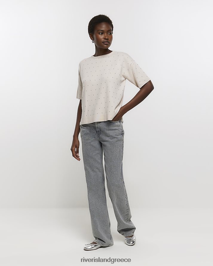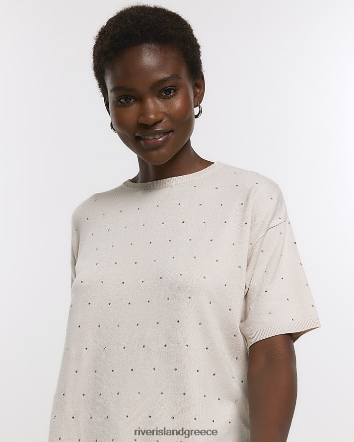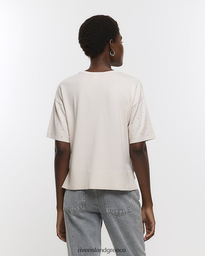River Island ενδύματα μπεζ γυναίκες διακοσμημένο κοντομάνικο τοπ B6N8X897