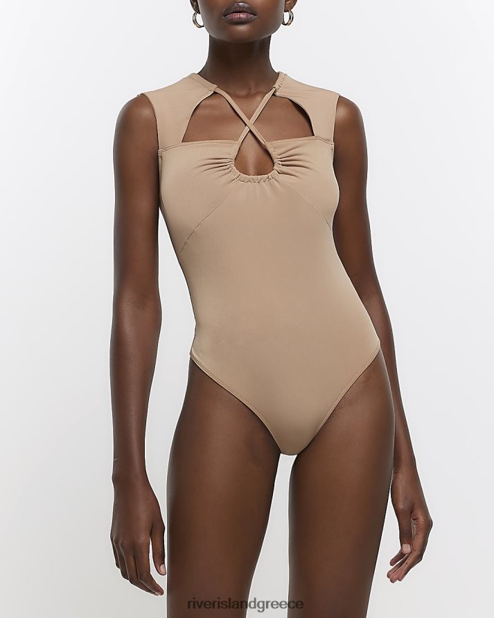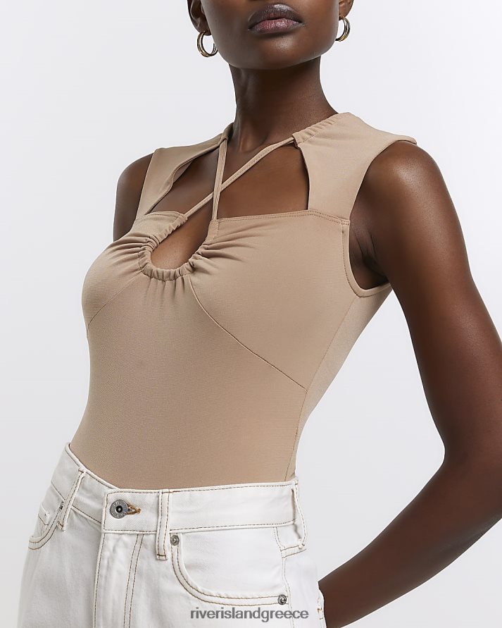 River Island ενδύματα μπεζ γυναίκες κομμένο ρουχαλό κορμάκι B6N8X1463