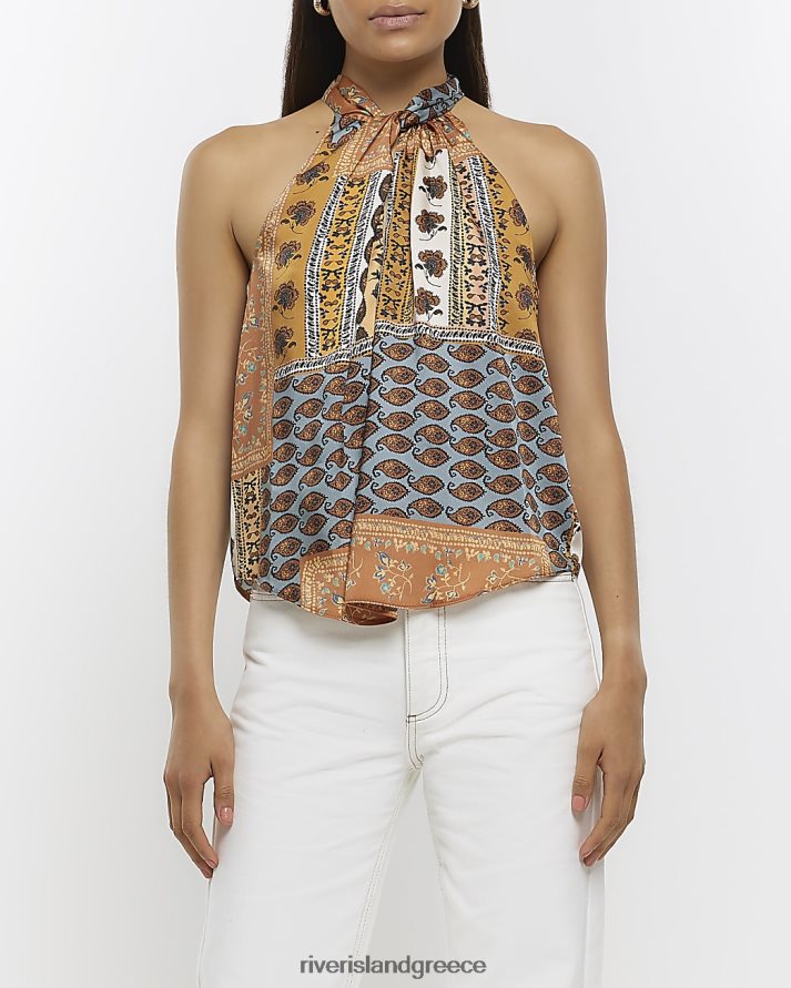 River Island ενδύματα πορτοκάλι γυναίκες Σατέν μαντήλι με στάμπα λαιμόκοψης B6N8X535