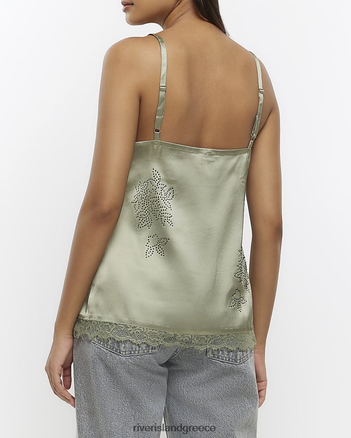 River Island ενδύματα πράσινος γυναίκες σατέν διαμάντι καμί τοπ B6N8X457