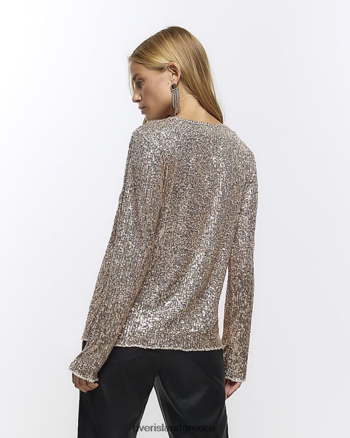 River Island ενδύματα ροζ χρυσός γυναίκες μακρυμάνικο τοπ με παγιέτες B6N8X3823
