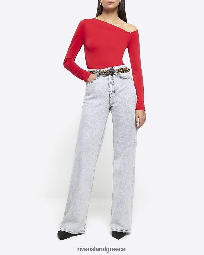 River Island ενδύματα το κόκκινο γυναίκες μακρυμάνικο μπλουζάκι εκτός ώμου B6N8X129