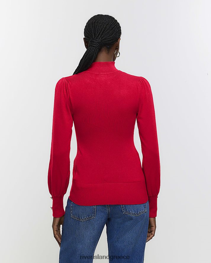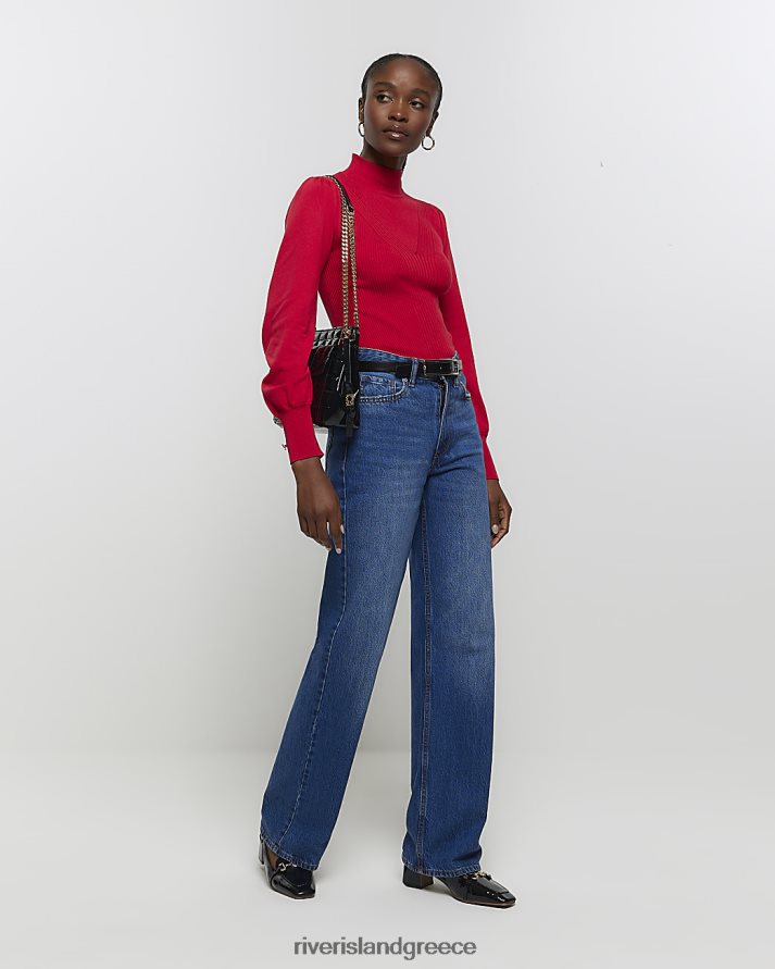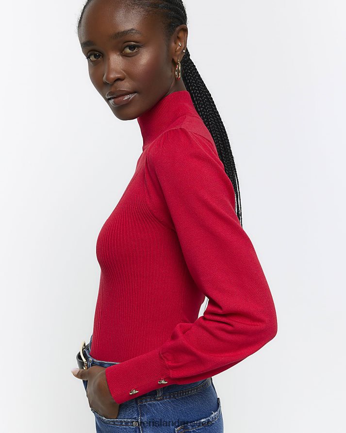 River Island ενδύματα το κόκκινο γυναίκες rib ψηλό λαιμό μακρυμάνικο τοπ B6N8X169