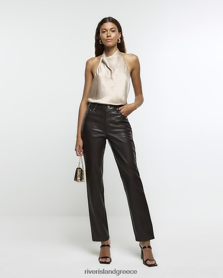 River Island ενδύματα χρυσός γυναίκες σατέν μπλουζάκι με λαιμόκοψη B6N8X302
