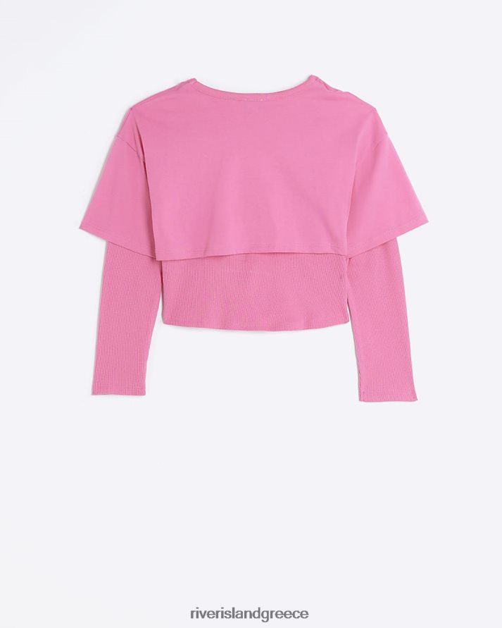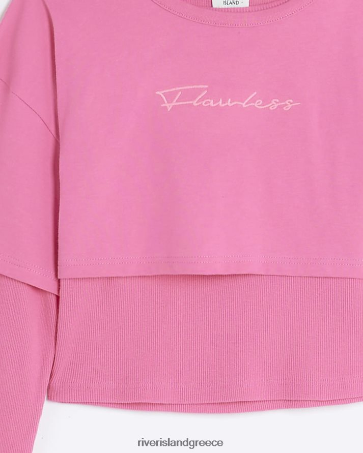 River Island ενδύματα ροζ κορίτσια γρ κεντημένο 2 σε 1 τοπ B6N8X6317