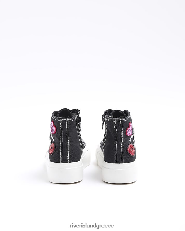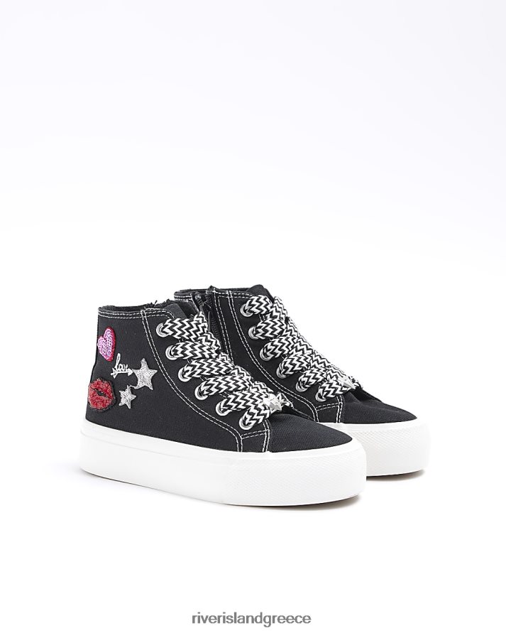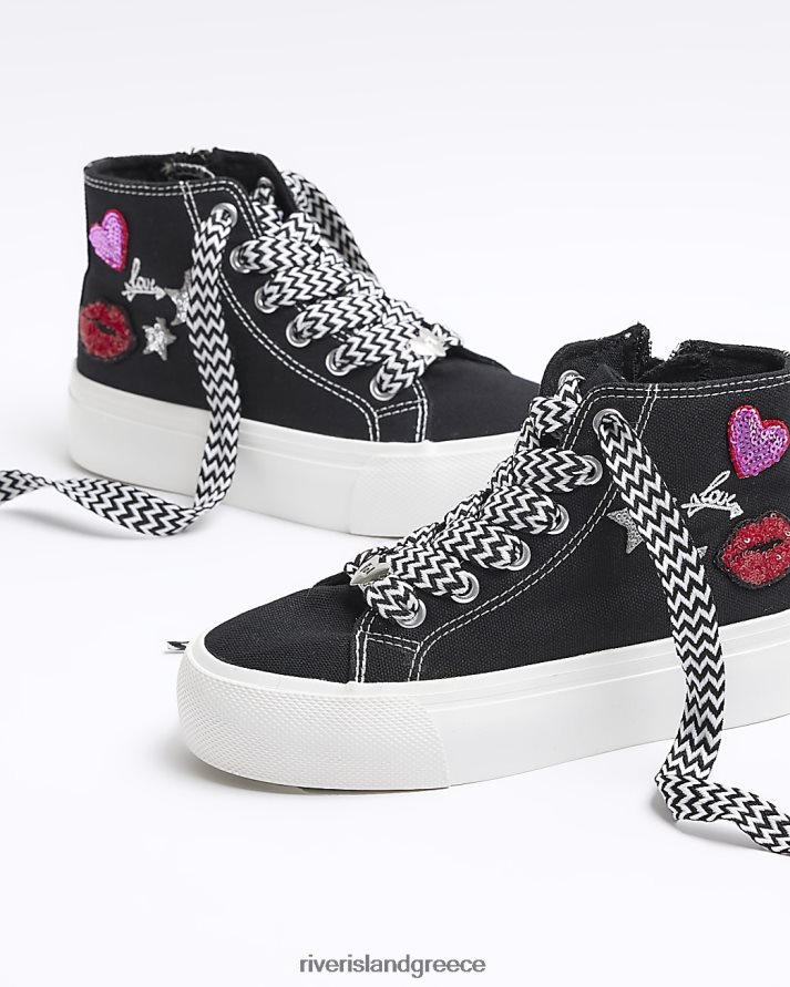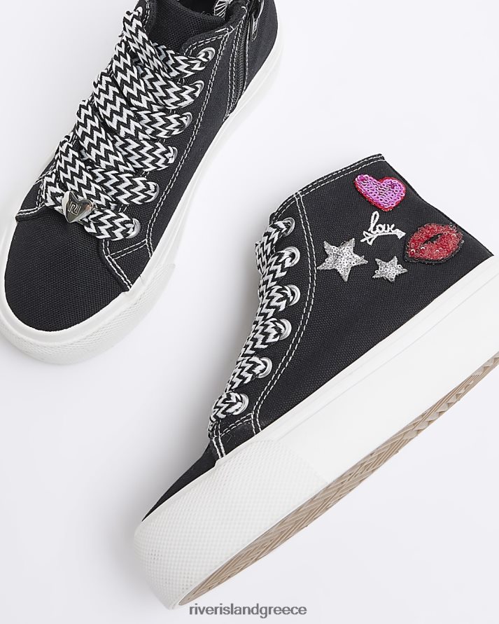 River Island είδη υπόδησης μαύρος κορίτσια g patch high top trainers B6N8X6061