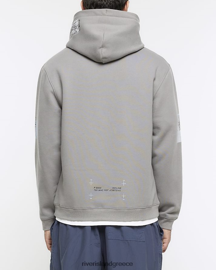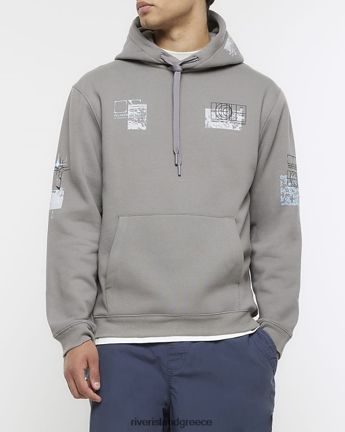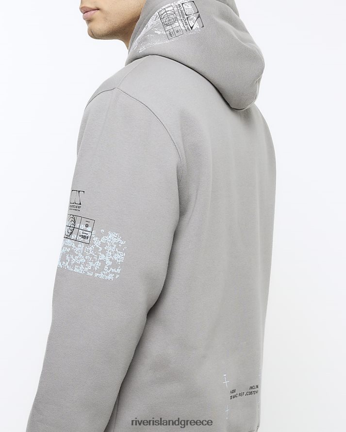 River Island ενδύματα γκρί άνδρες γραφικό φούτερ με κανονική εφαρμογή B6N8X5408