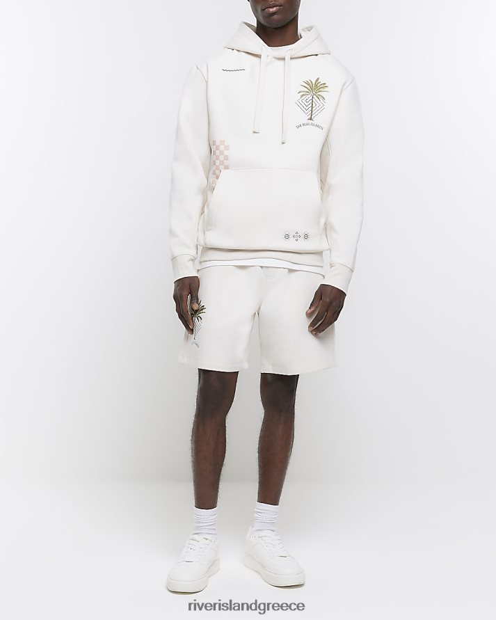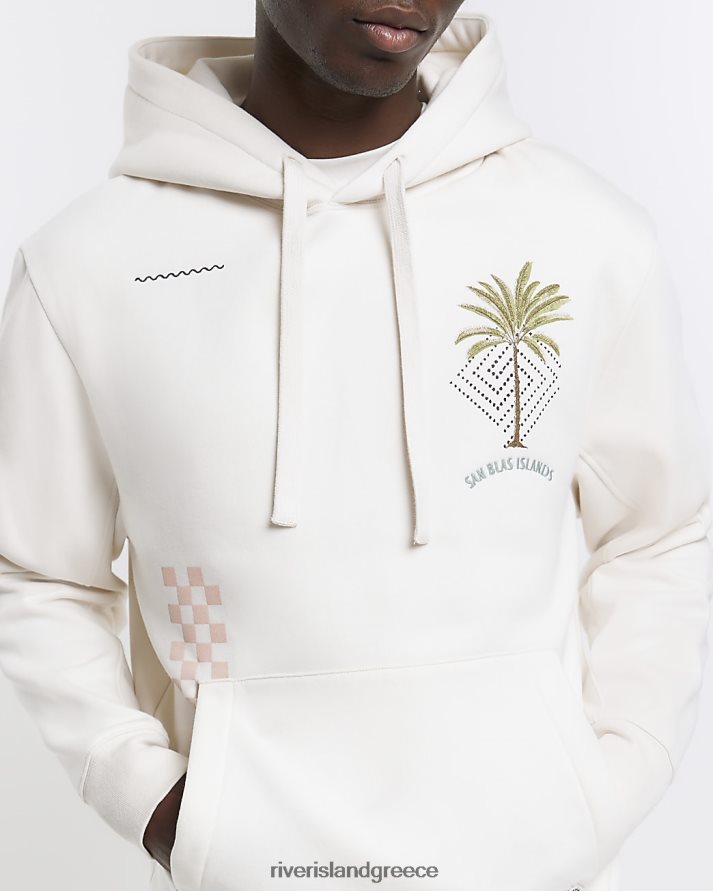 River Island ενδύματα εκρού άνδρες κανονική εφαρμογή κεντημένη κουκούλα B6N8X5434