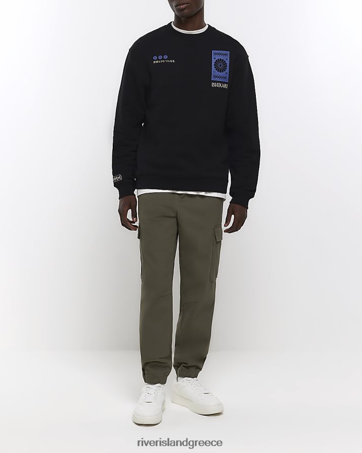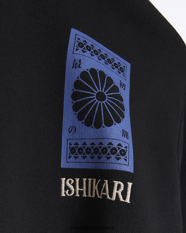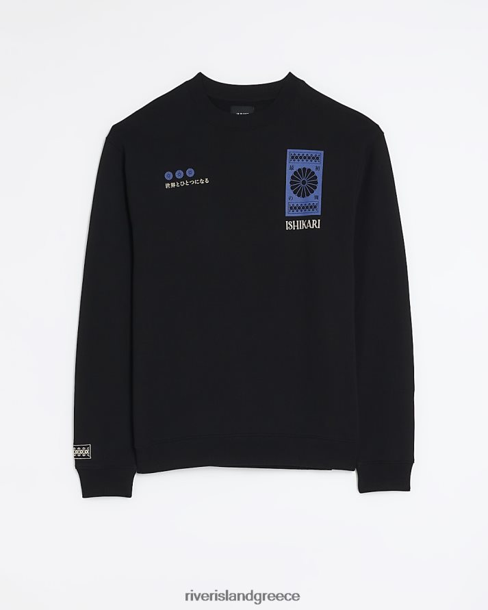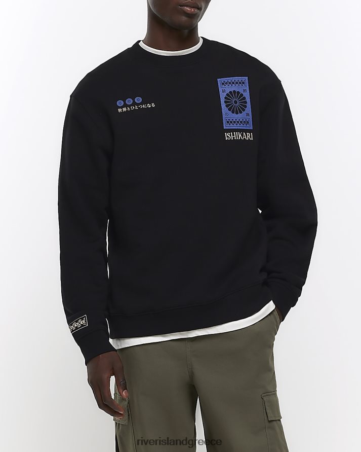River Island ενδύματα μαύρος άνδρες γραφικό φούτερ με κανονική εφαρμογή B6N8X5724