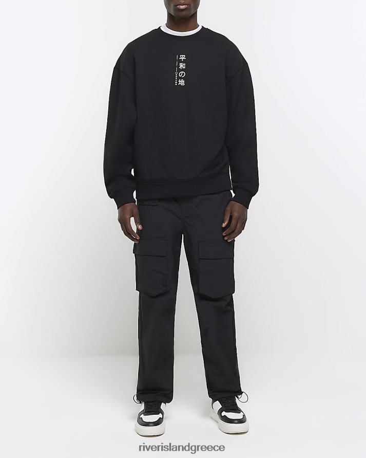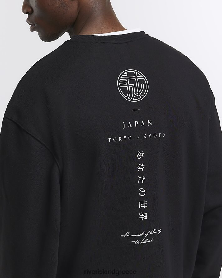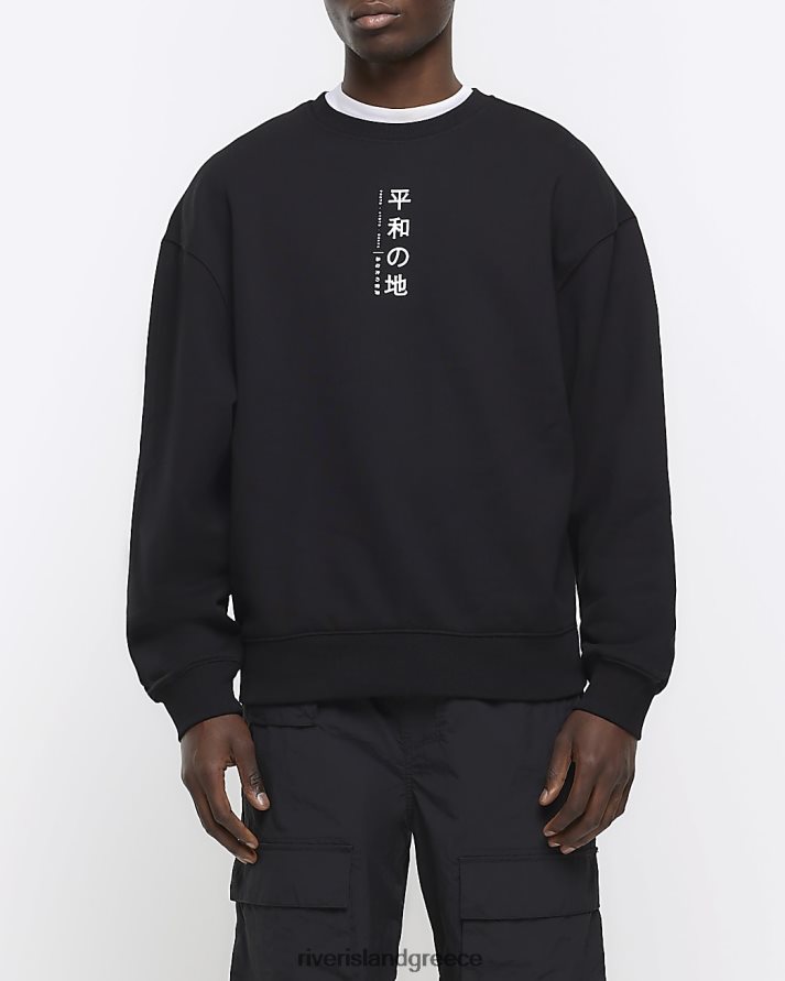 River Island ενδύματα μαύρος άνδρες ιαπωνική γραφική φούτερ με κανονική εφαρμογή B6N8X2558
