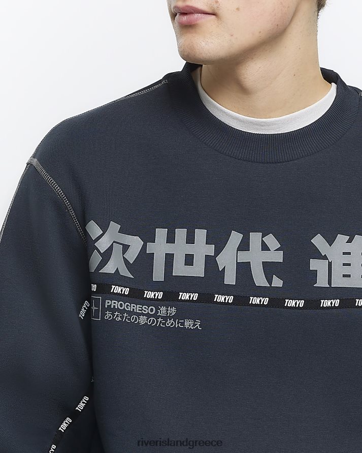 River Island ενδύματα μαύρος άνδρες ιαπωνική γραφική φούτερ με κανονική εφαρμογή B6N8X5508