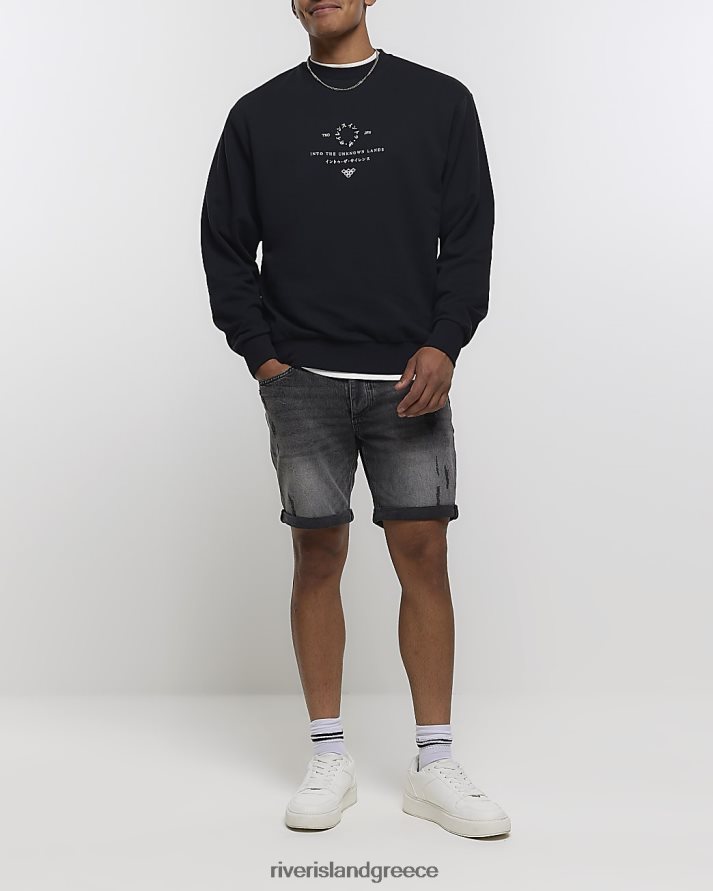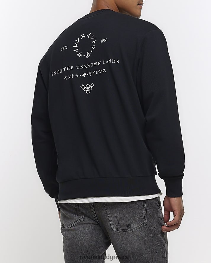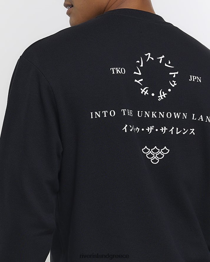 River Island ενδύματα μαύρος άνδρες ιαπωνική γραφική φούτερ με κανονική εφαρμογή B6N8X5534