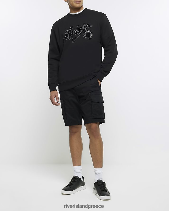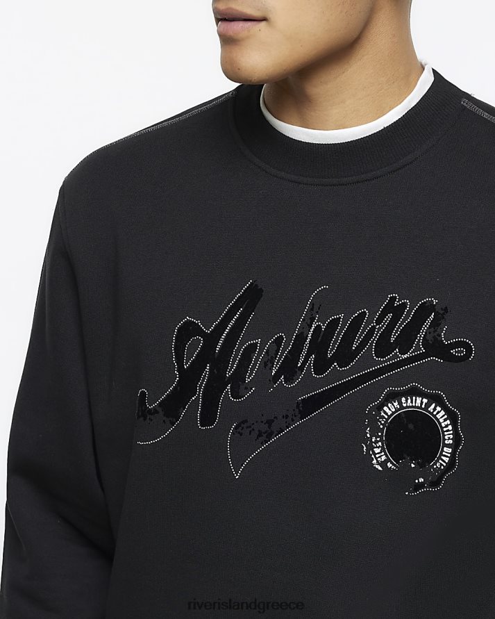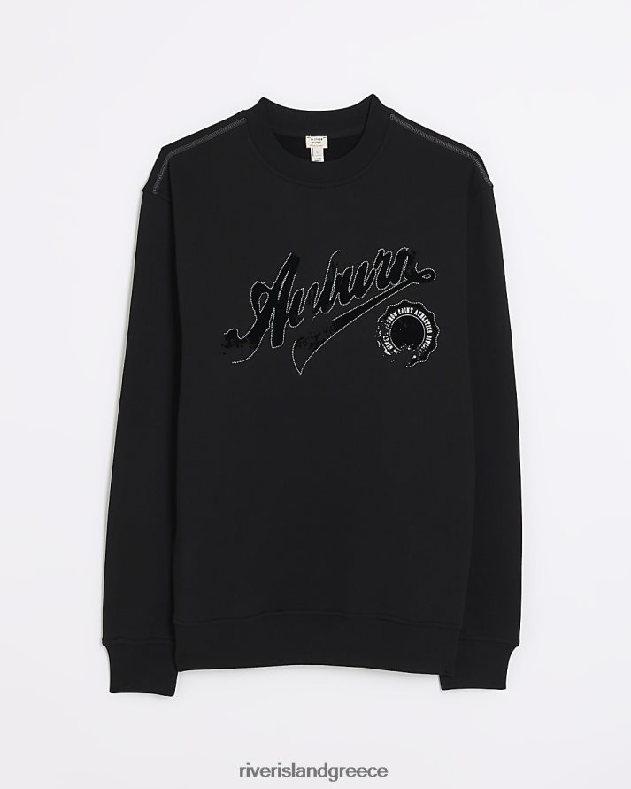 River Island ενδύματα μαύρος άνδρες κεντημένο φούτερ με κανονική εφαρμογή B6N8X5771
