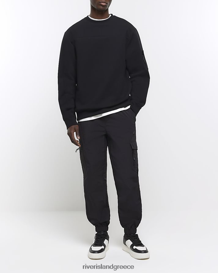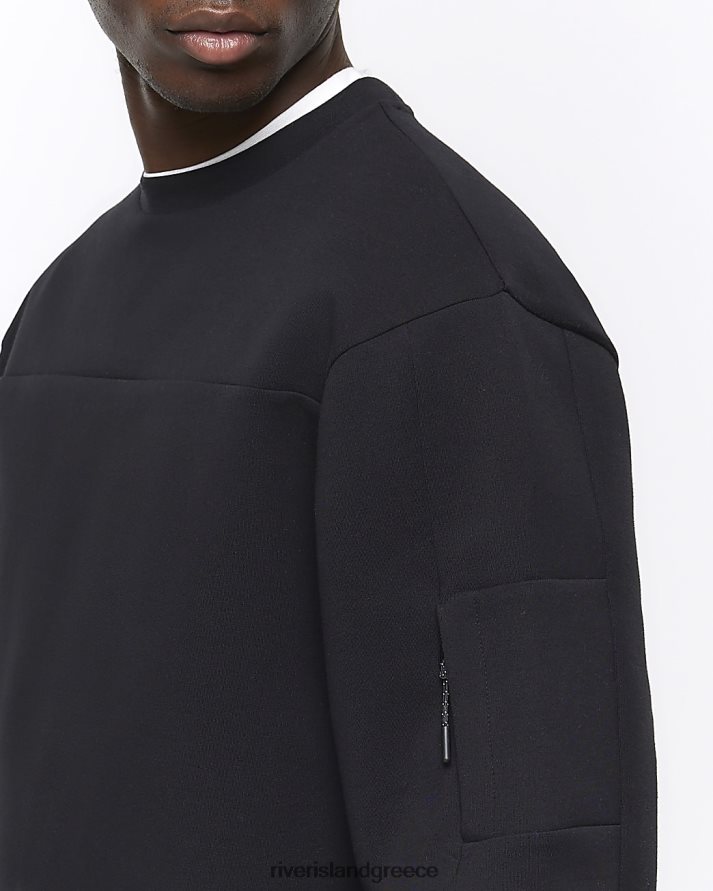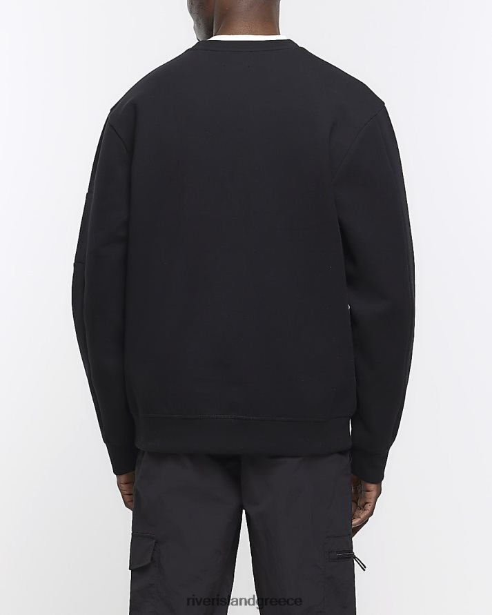 River Island ενδύματα μαύρος άνδρες φούτερ με κανονική εφαρμογή από νεοπρένιο B6N8X5825