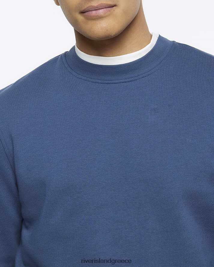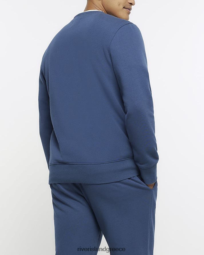 River Island ενδύματα μπλε άνδρες μακρυμάνικη φούτερ σε λεπτή εφαρμογή B6N8X5728