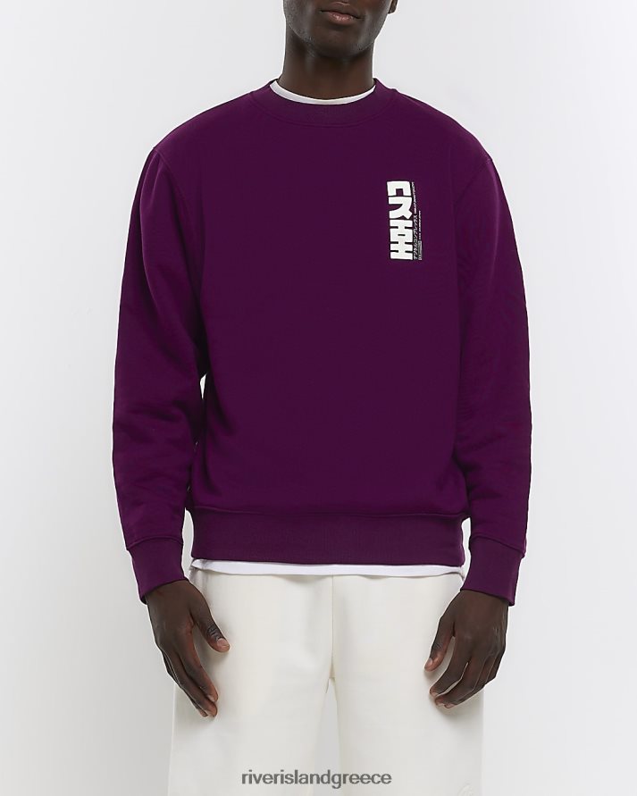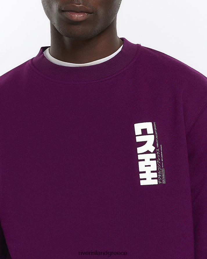 River Island ενδύματα μωβ άνδρες γραφικό φούτερ με κανονική εφαρμογή B6N8X2560