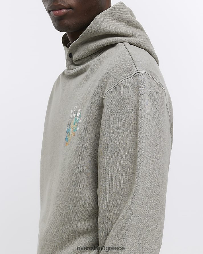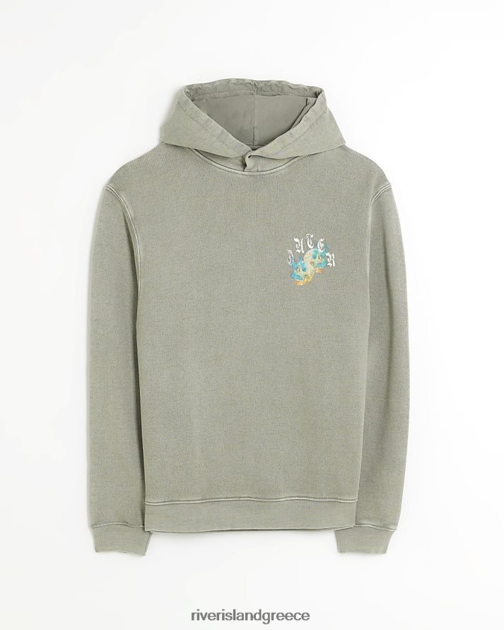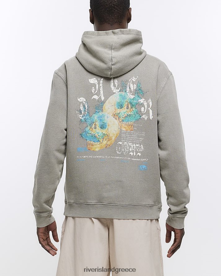 River Island ενδύματα πλυμένο γκρι άνδρες κανονική εφαρμογή γραφικό hoodie κρανίο B6N8X5787