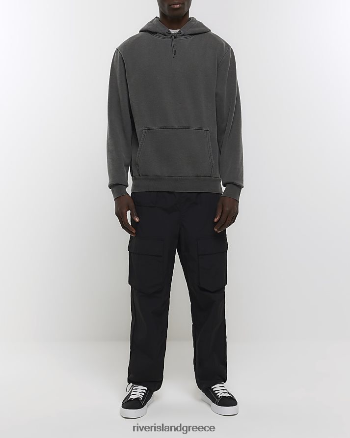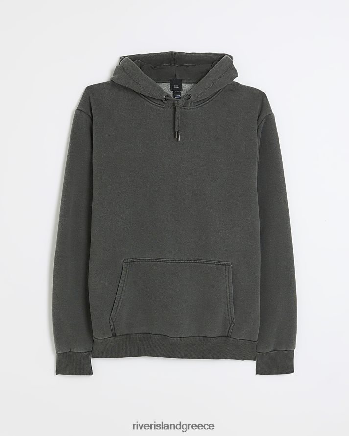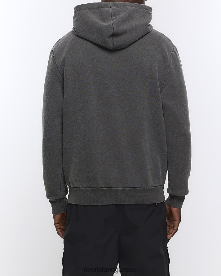 River Island ενδύματα πλυμένο γκρι άνδρες κανονική εφαρμογή με κουκούλα B6N8X5762