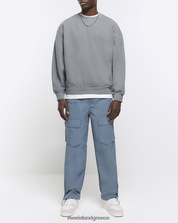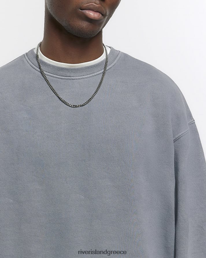 River Island ενδύματα πλυμένο γκρι άνδρες υπερμεγέθη φούτερ B6N8X2876