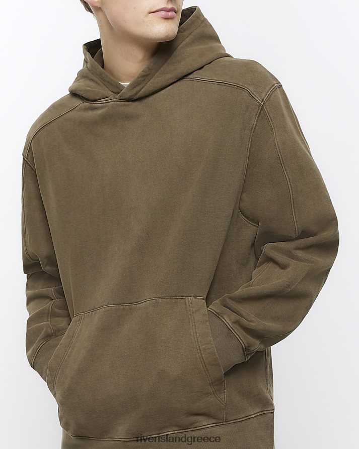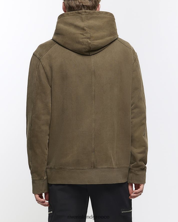 River Island ενδύματα πλυμένο χακί άνδρες κανονική εφαρμογή με κουκούλα B6N8X5457