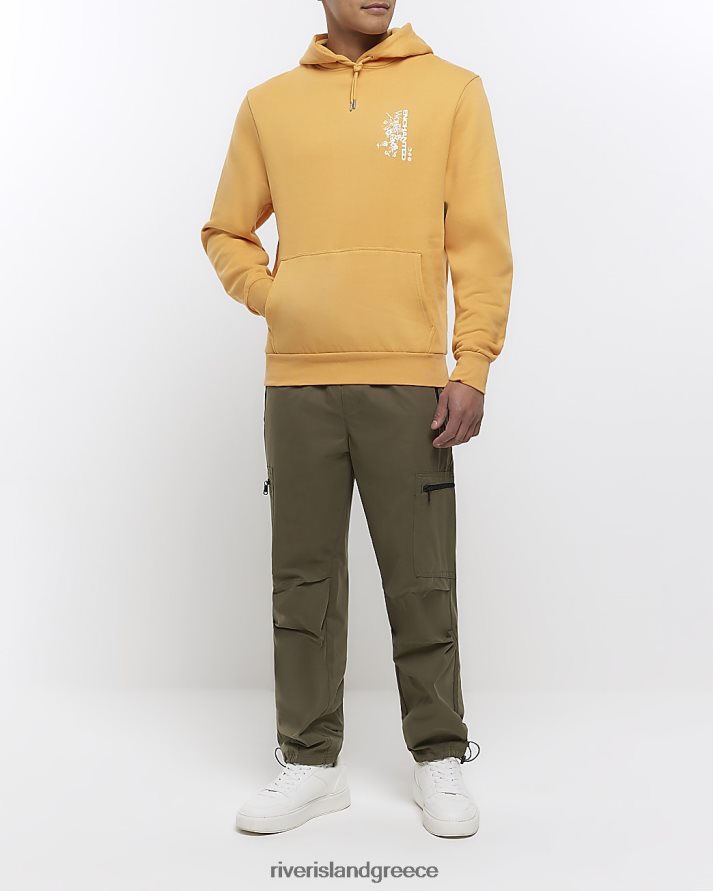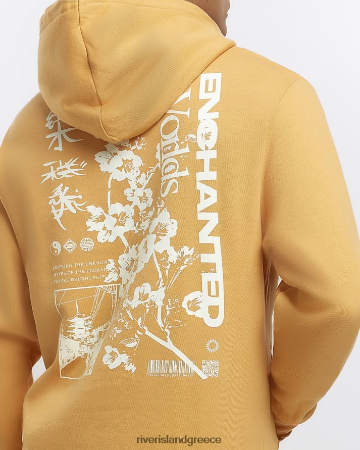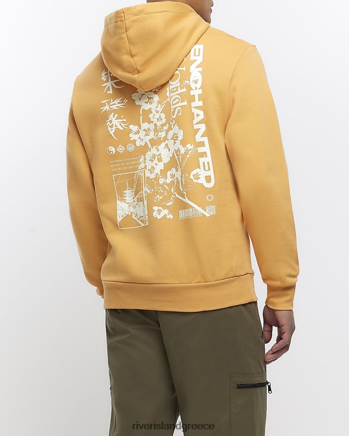 River Island ενδύματα πορτοκάλι άνδρες Ιαπωνική γραφική κουκούλα με κανονική εφαρμογή B6N8X5809